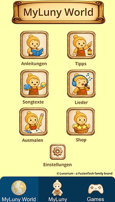Die MyLuny APP ist eine liebevoll gestaltete App, mit der Kinder spielerisch entspannen, malen und einfache Spiele spielen können. Ziel ist es, mit MyLuny gemeinsame Kuschel‑ und Spielmomente zu schaffen, ohne Überreizung und mit klaren Pausen.